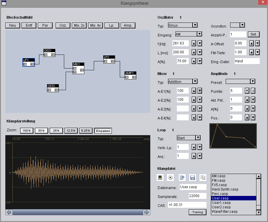 CAS ist ein modularer Software-Synthesizer, mit dem man komplexe Klänge erzeugen kann,